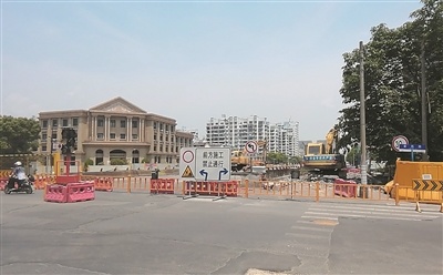 金桥北路是城区南北向通行的主干道之一,沿途有永兴学校、区排名前列人民医院和容大城市花园、丁香花园、绿城等众多住宅小区,往日各类车辆往来十分繁忙。此次由于杭富地铁施工需要,道路不得不实行全封闭,直至今年11月30日。