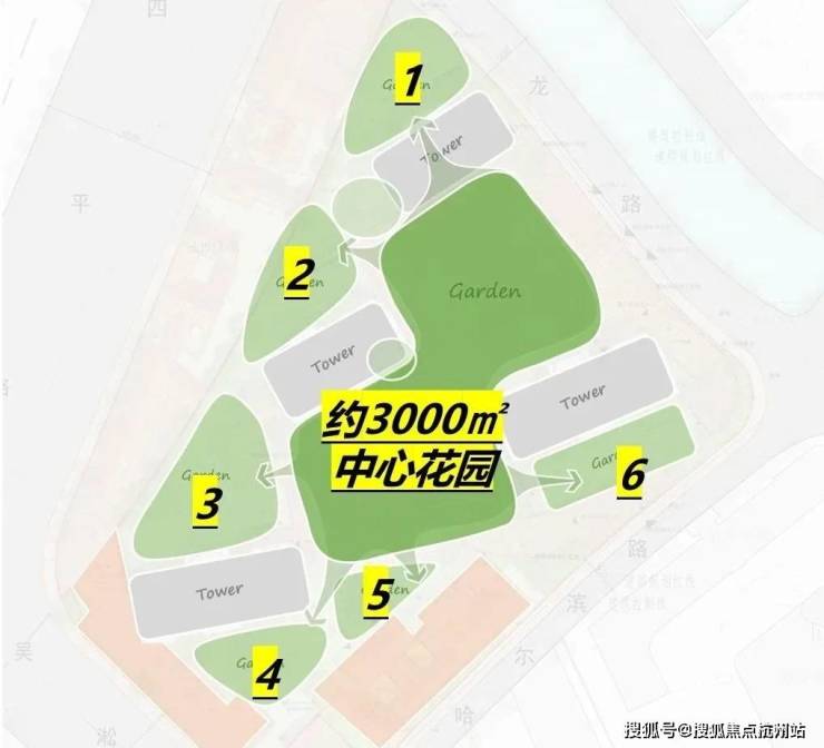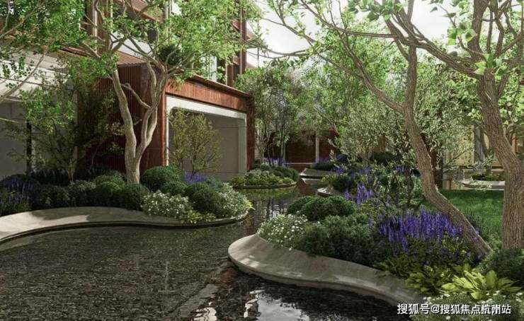 景观方面,「外滩瑞府」通过建筑楼体的偏转,形成了围合式的景观布局。由此,项目做出了约3000㎡尺度宏大,连续贯穿的核心中央花园,并利用楼栋布局与边界形成夹角,自然衍生出6个小型花园组团。