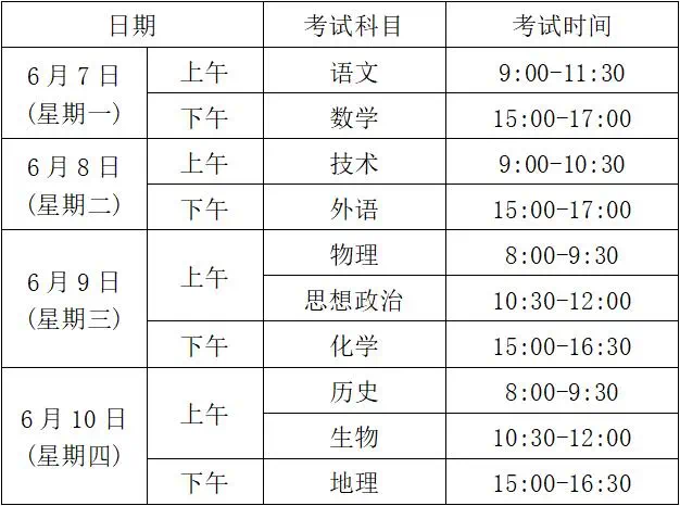 今年我省高考语文、数学、外语与选考科目考试时间安排如下: