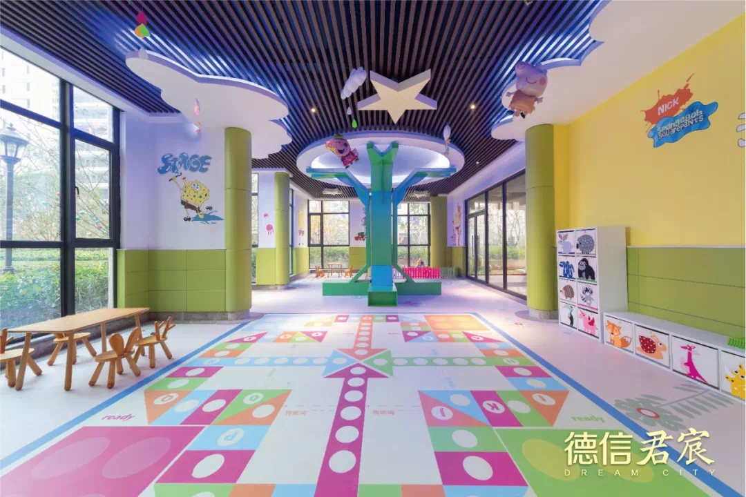 君宸有12幢高层,全部做了架空层,设有飞行棋室、茶室、围棋室、艺术长廊等主题,让老人小孩有更多的活动空间。