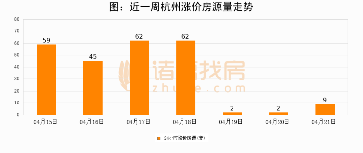 根据诸葛找房数据显示,杭州24小时涨价房源量为9套,较04月20日增加7套,环比上涨350%。与此同时,涨价房源占比小幅扩大,业主信心有所提升。