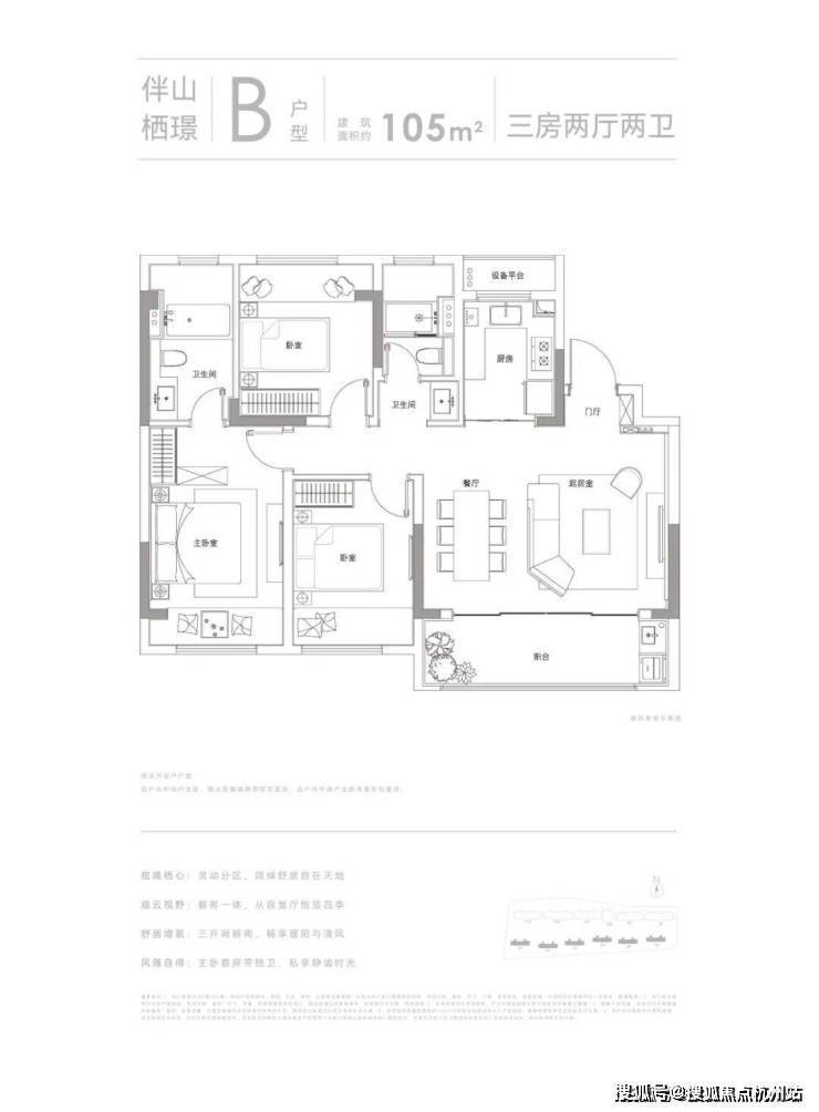 户型面积:约105㎡3房2卫、约148㎡4房2卫