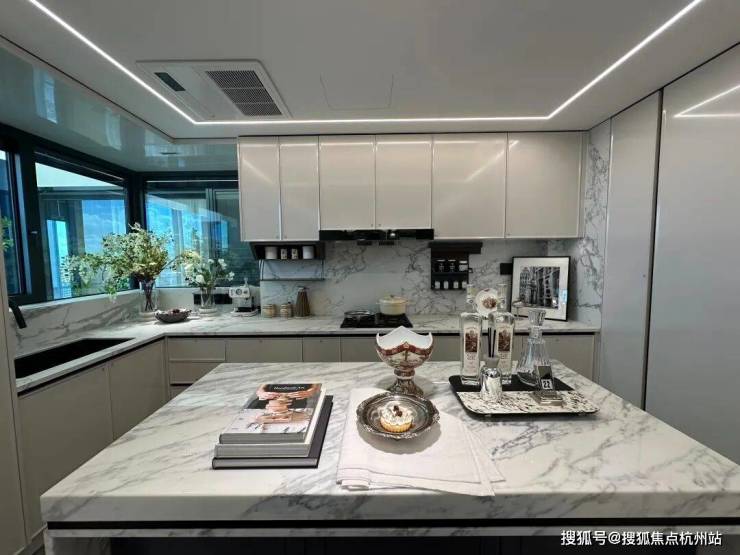 整体动静分区格局。在U型厨房基础上融入 “社交属性”,让烹饪时亦可与客厅家人互动。