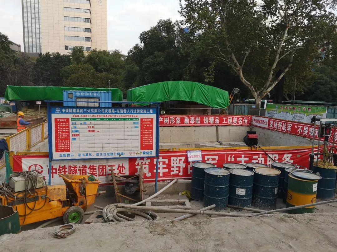 2018年11月1日上午,在中铁隧道集团三处有限公司庆春路/东清巷人行过街设施工程施工现场,随着“杭州一号”矩形顶管机机头缓缓驶出接收井钢洞圈,标志着庆春路人行过街设施工程主通道矩形顶管施工顺利贯通。