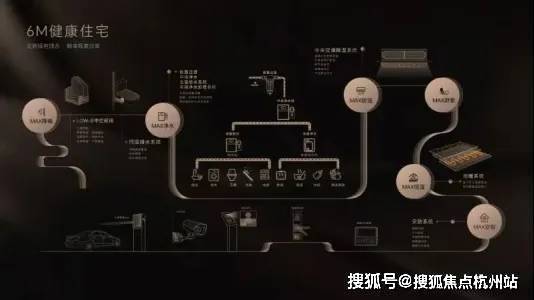 全屋配置6M健康智能住宅系统。这个智能系统系统涵盖降噪、净水、除湿、恒温、安智等多方面: