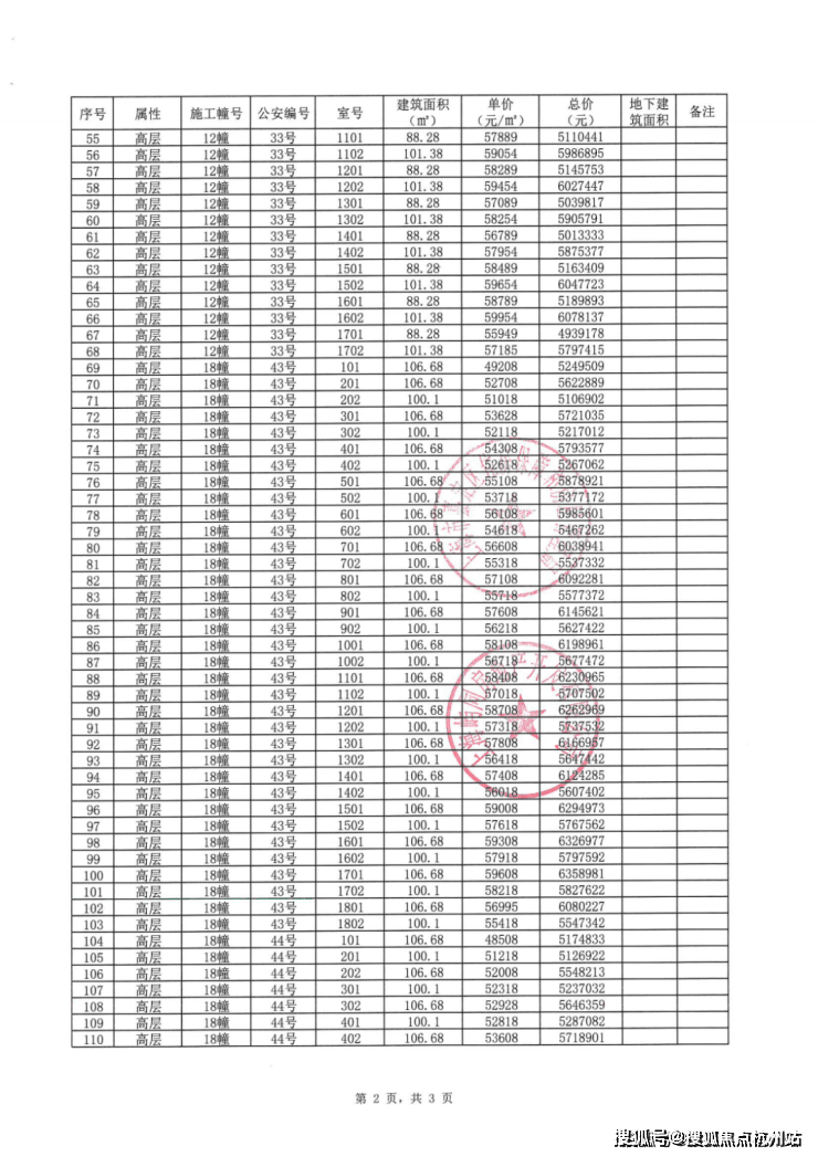 一房一价表: