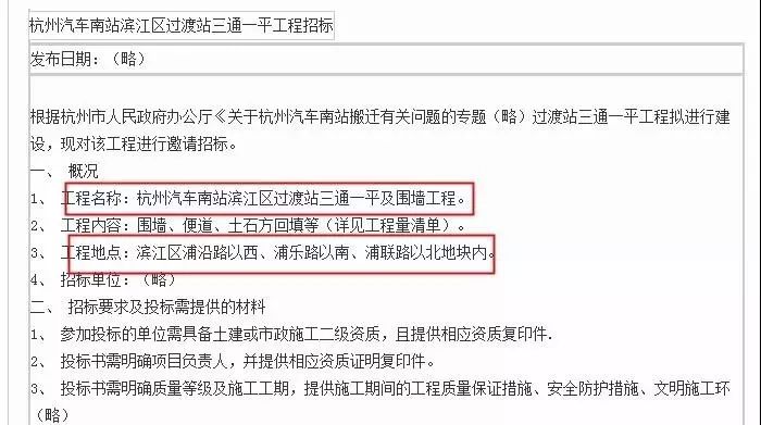 《浙江在线-住在杭州网》:最近,原来要建汽车南站的滨康综合体“默默无闻”了整整九年后终于又有了新的进展——滨康综合体(1)、(2)地块将在2019年重新出让!同时,论坛有位网友贴出了一张“杭州汽车南站滨江区过渡站三通一平工程招标”的截图。这意味着,汽车南站位于滨江区的过渡站位置已经确定。