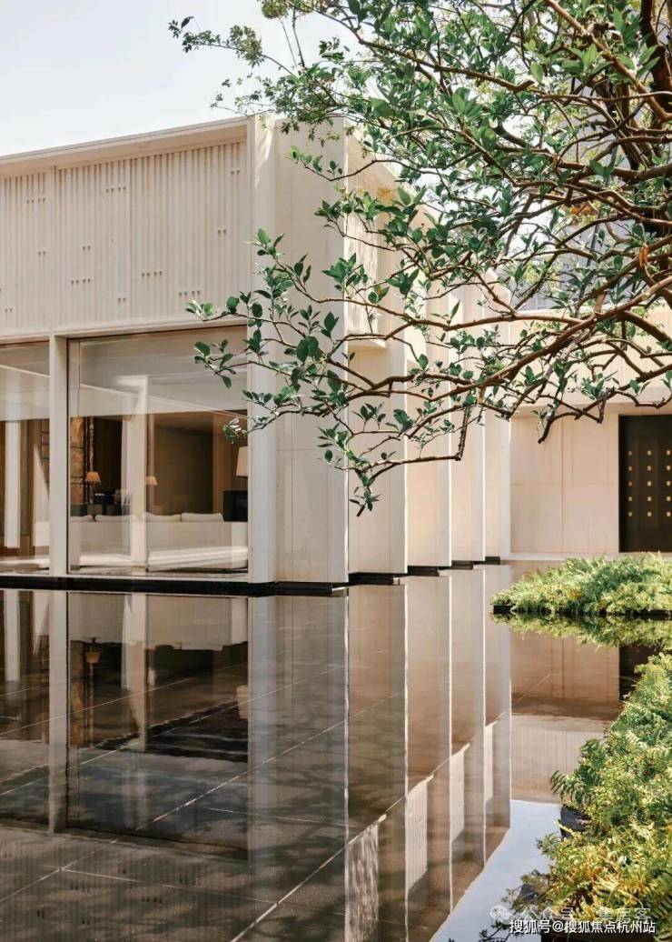 大曲线流行一时,它却独爱横平竖直,灵动弧线只隐现于粼粼水波的反射;五彩斑斓的奢石大行其道,它却固守一色素净,绚丽光彩只在均釉陶砖的表面流转,随天光变幻。