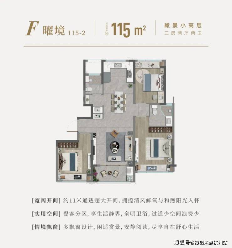 高层:115㎡(3室2厅2卫,精装交付),总价312-352万