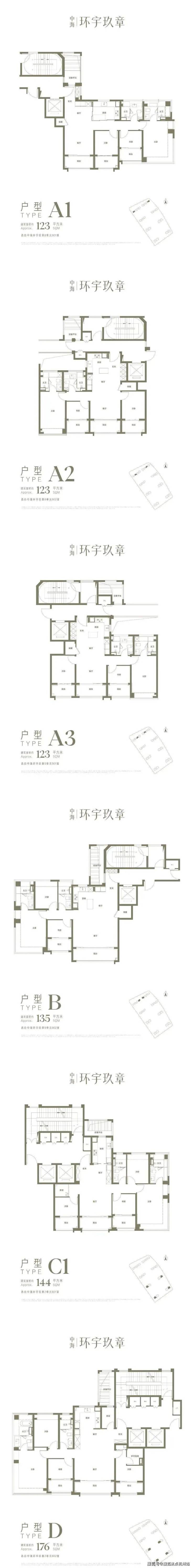 定位纯改善,无刚需户型:主力123㎡三房、135㎡三房、144㎡四房、176㎡四房,适配三口 / 二胎 / 三代同堂全周期