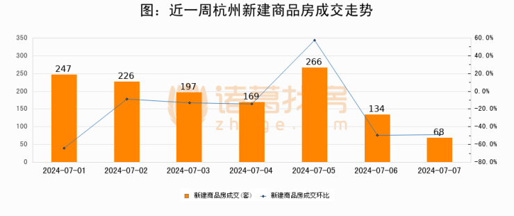 【杭州成交日报】07月07日新房成交68套、二手房207套;涨价房源122套