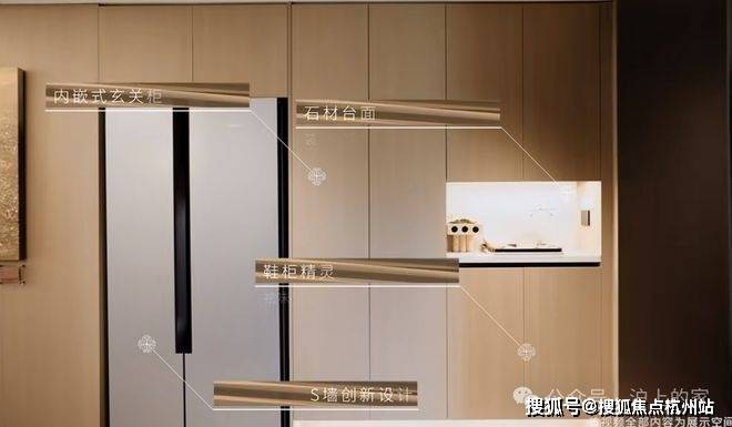 入户后,第一眼就可以看到玄关柜采用石材台面, ✅✅招商时代乐章售楼处电话:400-8385-958✅✅ 下至标配鞋柜精灵,在S墙创新设计后,首批次房源更是额外赠送西门子双开门冰箱,这在以往可是上海千万级新房的交付标准: