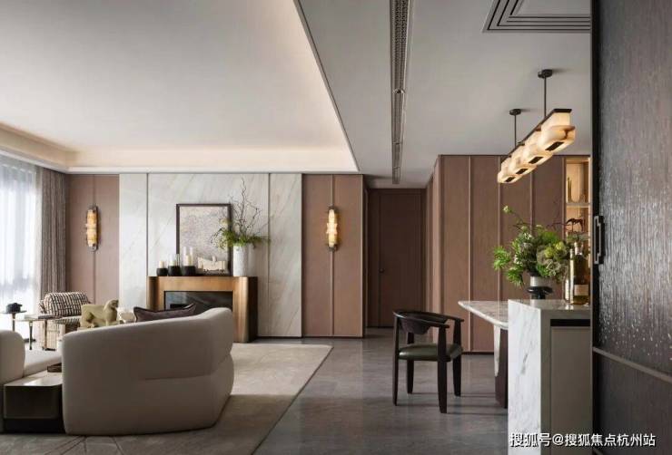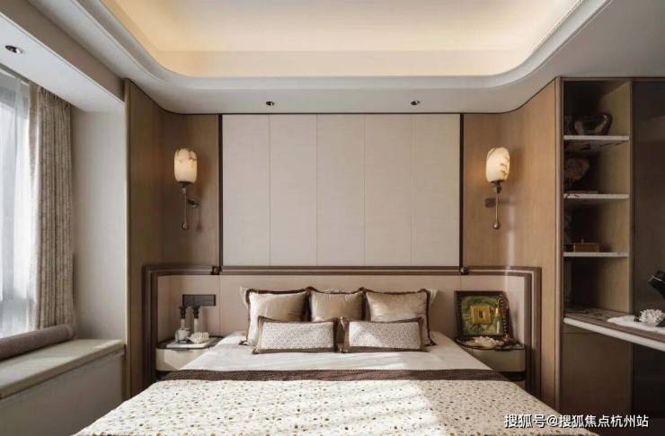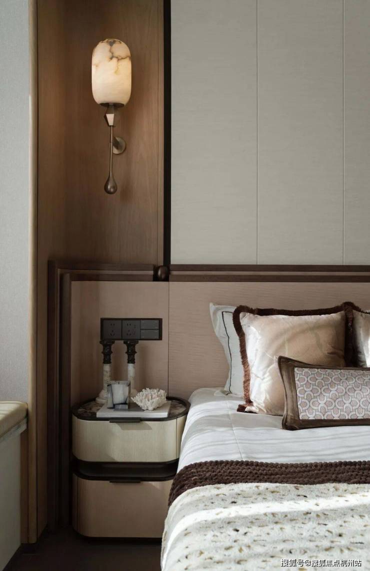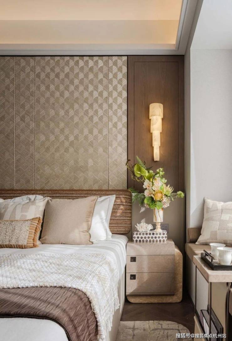 兼具现代舒适与传统雅致,肌理感十足的背景墙与细节品质的追求,巧妙融合现代与东方韵味。
