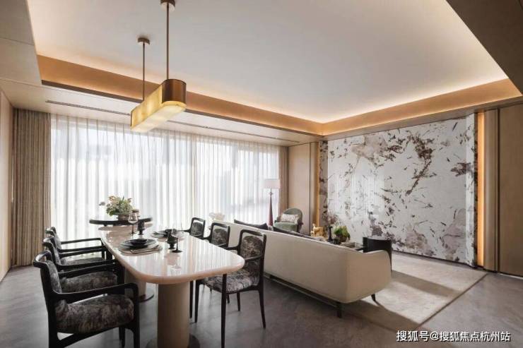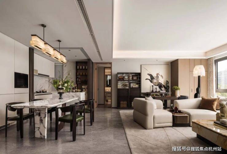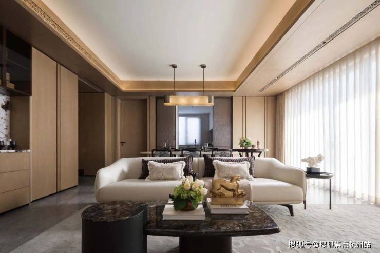 整体空间在奢华精致与开放明亮的布局中,构建出一个现代东方优雅的家居场景,让家人在此共享温馨时刻,友人相聚畅谈,均可享受到舒适与美学的双重体验。