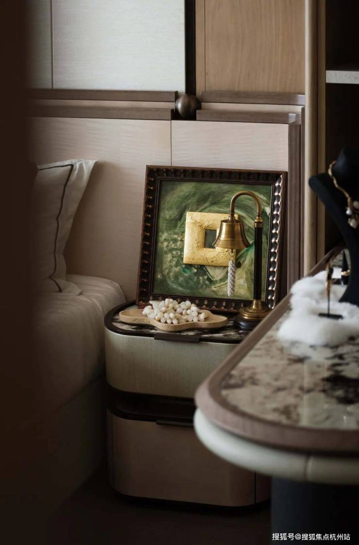 卧室充满奢华与优雅,每个细节都散发着高端品味。米色与棕色的主色调,营造出舒适的空间氛围。艺术感十足的背景墙,细腻的质感与柔和的色调,为空间奠定优雅基调。