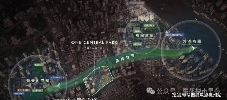 咫尺新天地蓝绿丝带上的关键节点距离新天地直线距离约400米,作为蓝绿丝带规划上的关键节点,随着大新天地东进南拓战略逐步实施,通过水景、绿地和公共空间,串联新天地、豫园、外滩三大世界级商业版图。