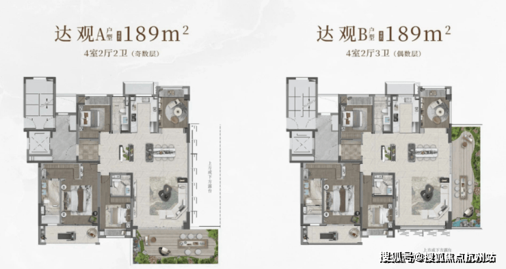 洋房:建筑面积145-189㎡,精装交付(标准3000元/㎡),总价441-1052万元,含第四代空中院墅设计(如130㎡露台)