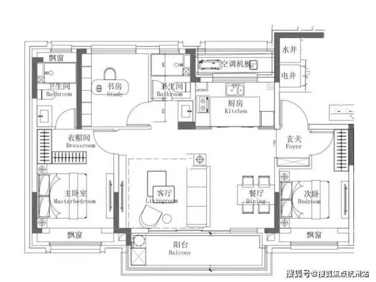 建建面约114㎡3室2厅2卫户型图