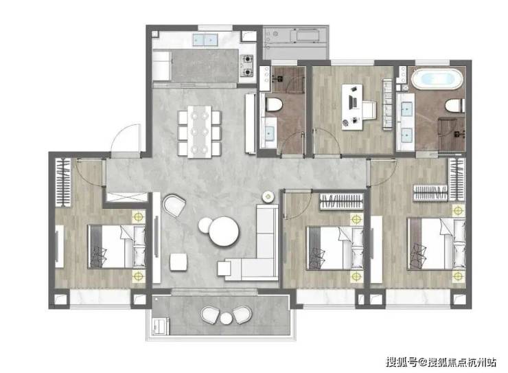 建面约142㎡四房两厅两卫户型