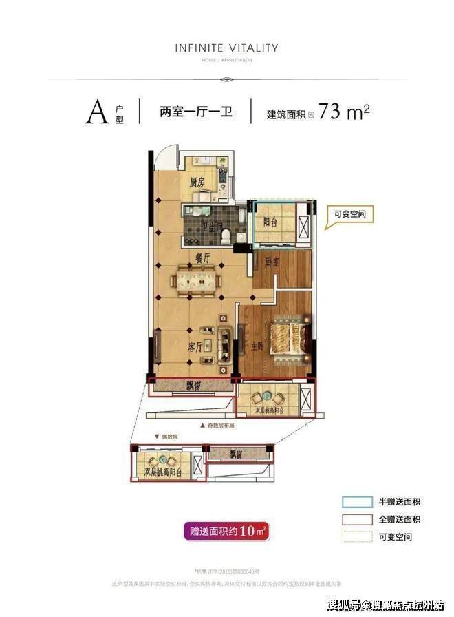 【119㎡户型】当然,也有供刚需购房者“一步到位”的三房户型——119㎡,其中可变空间也有约19㎡。