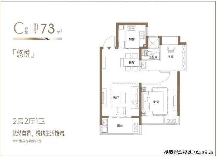 建面约73㎡小户型,双开间朝南+客餐厅一体化+2房功能性,非常适配过渡的年轻小家庭,首付约55万起。