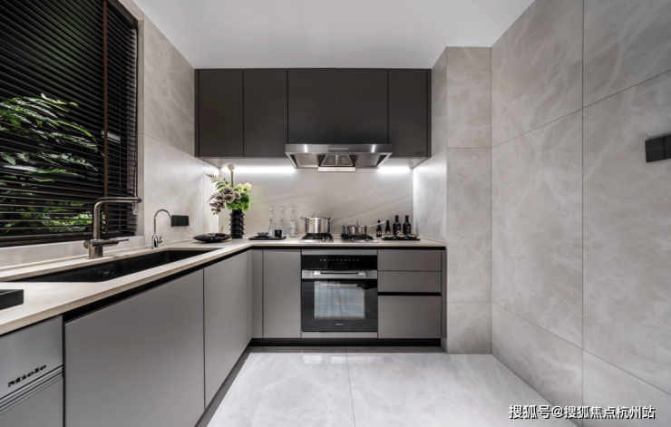 厨房配置了国际顶级厨电品牌之一的美诺Miele(或同等档次品牌):蒸&烤一体机,两灶三眼灶台,洗碗机,抽油烟机及冰箱的5件套超高规格,全面提升厨房“含金量”。