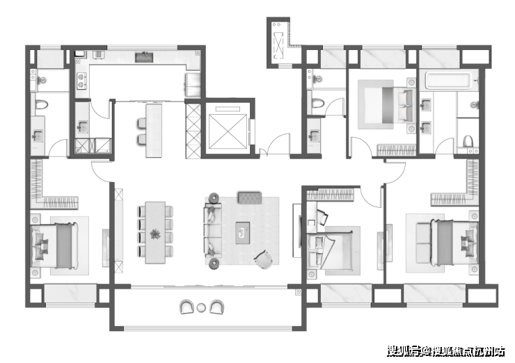 双套房设计,主卧卫浴双台盆,奢配衣帽间,尽情取悦自我;朗阔格局,预设空间,从容美时美刻。