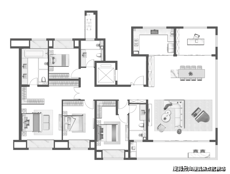 一梯一户大平层,约19.4m超大面宽南向开间,为精英家族定制奢适体面;