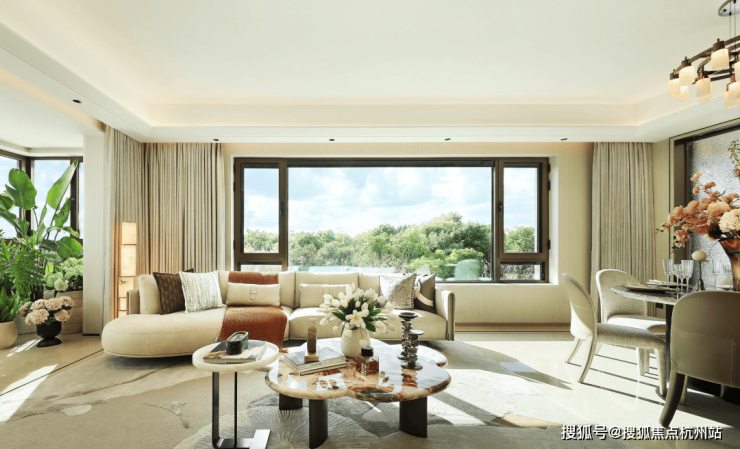 【约102㎡样板间】三房两厅两卫格局,同样的布局设计巧思应用于102㎡,打造出近乎双套房的生活体验。5米面宽横厅设计,营造极致通透感,臻选奢石融入空间,优雅时尚。厨房科学动线设计,搭配国际品牌五金和厨电,悦享精致烹饪时刻。星级主卧,独立卫浴,将空间最大程度延伸,打造舒居体验。