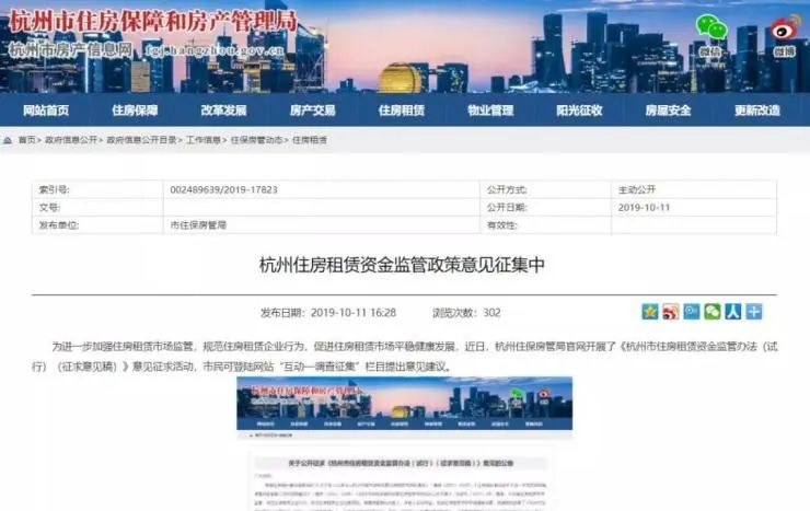从鼎家公寓的暴雷到乐伽公寓的停摆,再到零散的小型公司投诉不断,杭州市房管局也意识到了市场风险,去年十月份,《杭州市住房租赁资金监管办法(试行)(征求意见稿)》出台。