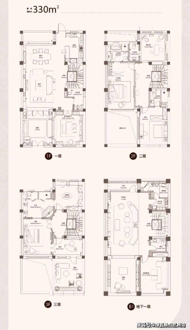 面积:330双拼、360类独栋、479类独栋、550类独栋