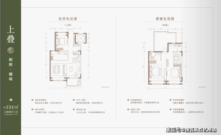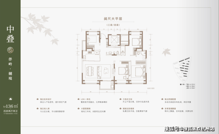 建面约137㎡下叠,四房两厅三卫全能格局,非常适合二娃家庭以及三代同堂。