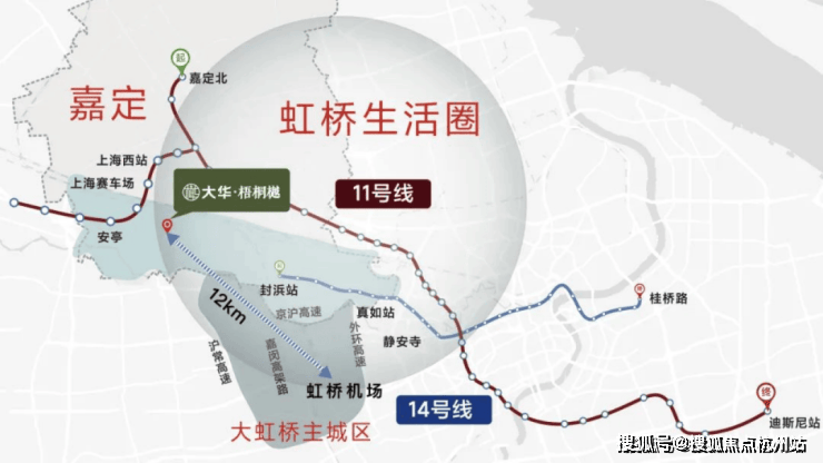「大华梧桐樾|越界」,位于嘉定的核芯区位,与虹桥主城区核心距离也只有5km!