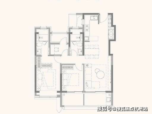 建面约 110㎡三房两厅两卫,板块内稀缺刚需改善户型,空间布局方正,南北通透,三开间朝南,南向面宽约 11.5 米,采光面充足;客餐厅相连延伸至南向阳台,视野开阔,可轻松容纳亲友欢聚;主卧为套房设计,配置独立卫浴与步入式衣帽间,私享静谧生活;其余两间卧室分布合理,互不干扰,适配二胎家庭或居家办公需求,空间可塑性强。