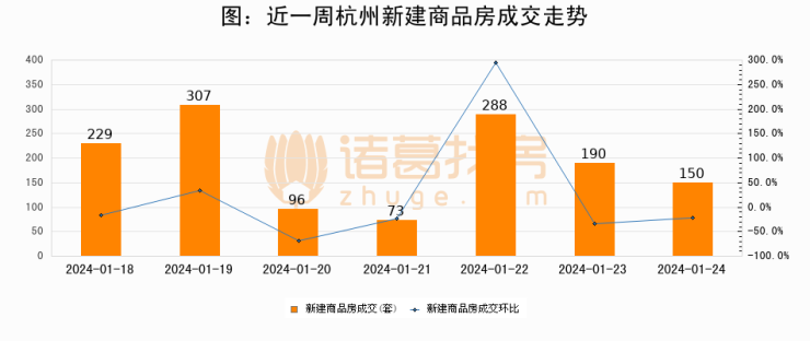 【杭州成交日报】01月24日新房成交150套、二手房210套;涨价房源63套