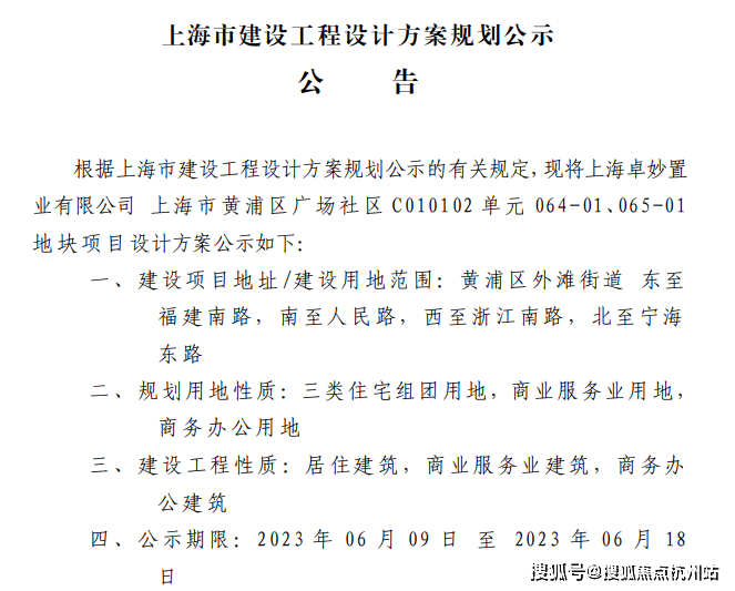 其实早在2023年6月9日,上海市资源与规划管理局就公布了黄浦区广场社区C010102单元064-01、065-01地块项目建设工程设计方案;