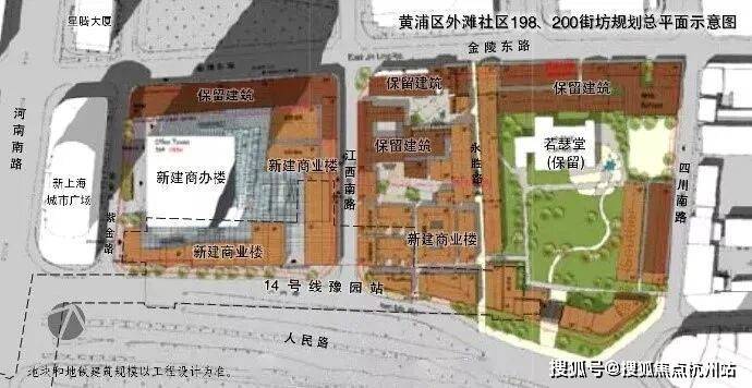 此前黄浦区披露的地铁14号线豫园站上海地块开放方案,就是在保留金陵路骑楼与一众历史保护建筑的情况下,新建一座185米的地标办公建筑,以达到现代与历史相融合的目的。