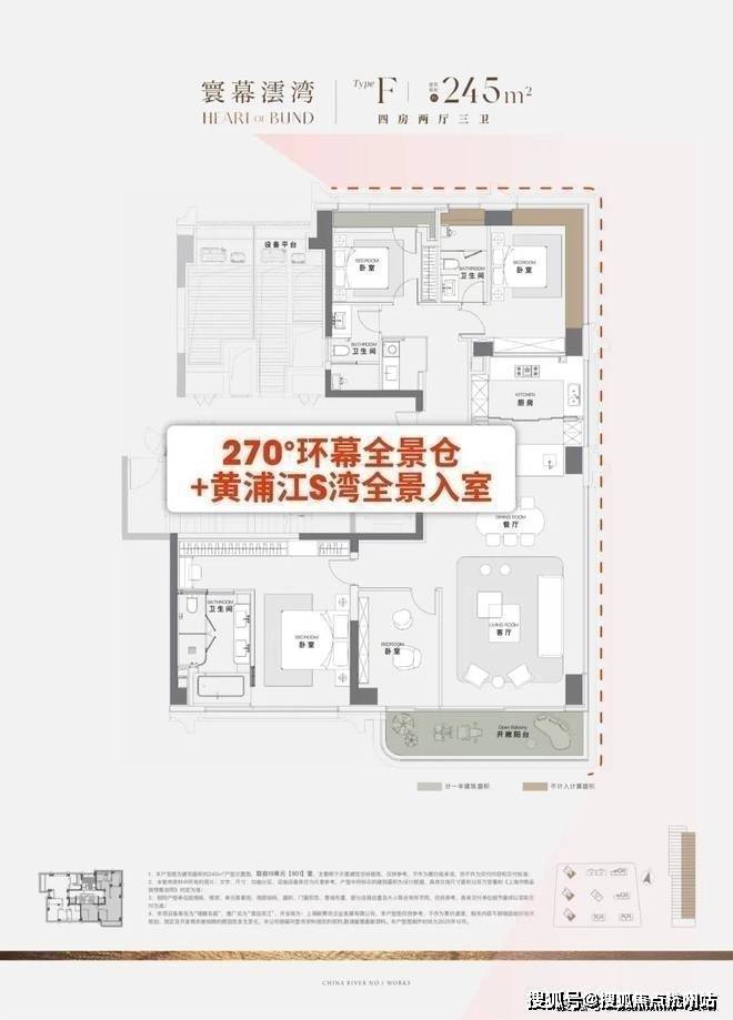 ④三卧全尺度奢适,主卧临窗浴缸瞰江!X空间定制方案可选,实现多场景布置!