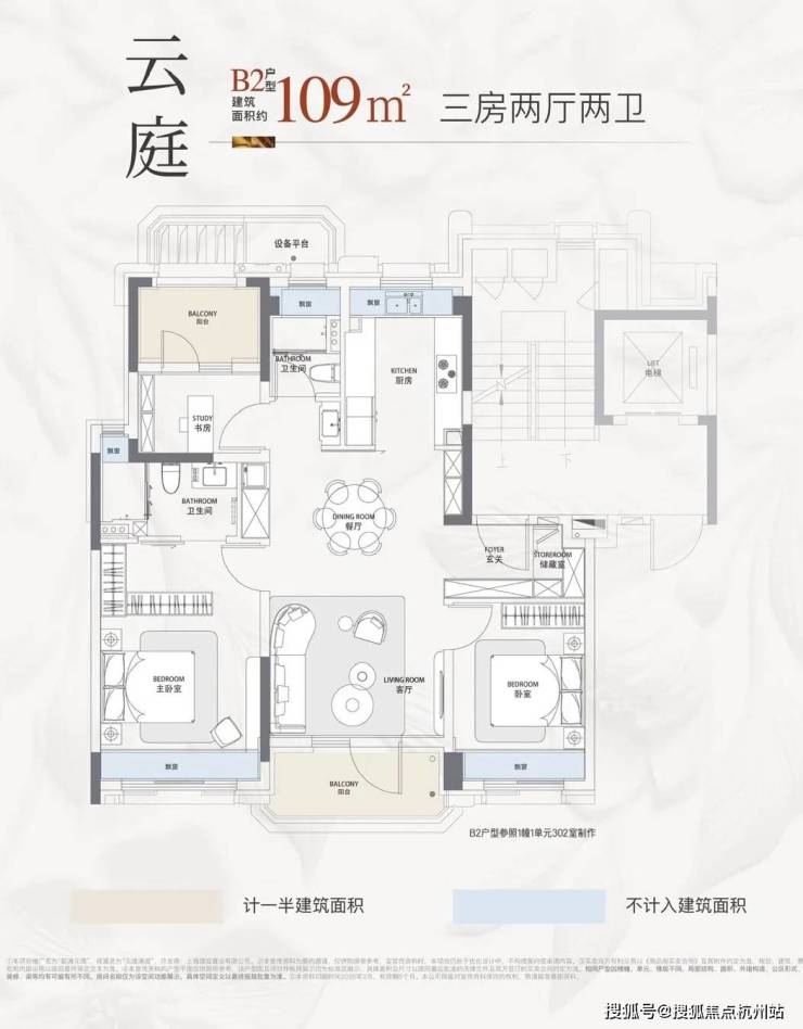 109㎡三房:南向面宽 9.6 米、6.2 米宽景阳台、主卧套房、全明通透。