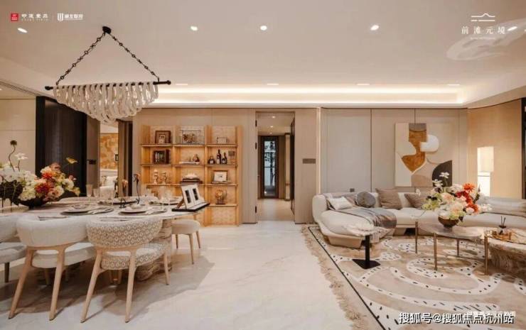 『前滩·元境』启用日清设计、CCD设计事务所、梁志天工作室、朗道国际设计四大知名设计天团,以风貌区为灵感设计,项目复刻衡复风貌区的街区神韵,采用“围合+轴线”布局,以现代手法转译石库门的肌理与老洋房的线条;重现了海派里弄的围合感与街区韵律,暖色贝金米黄石材搭配红洞石墙面,唤醒城市记忆。