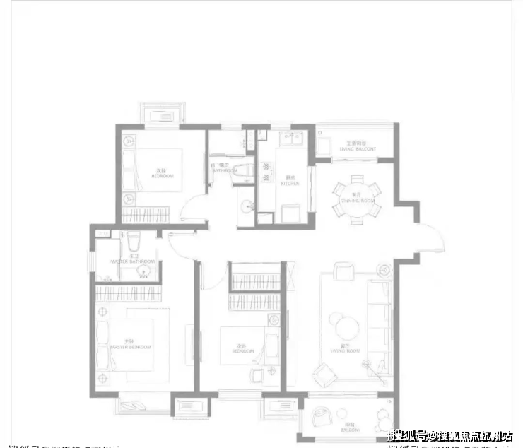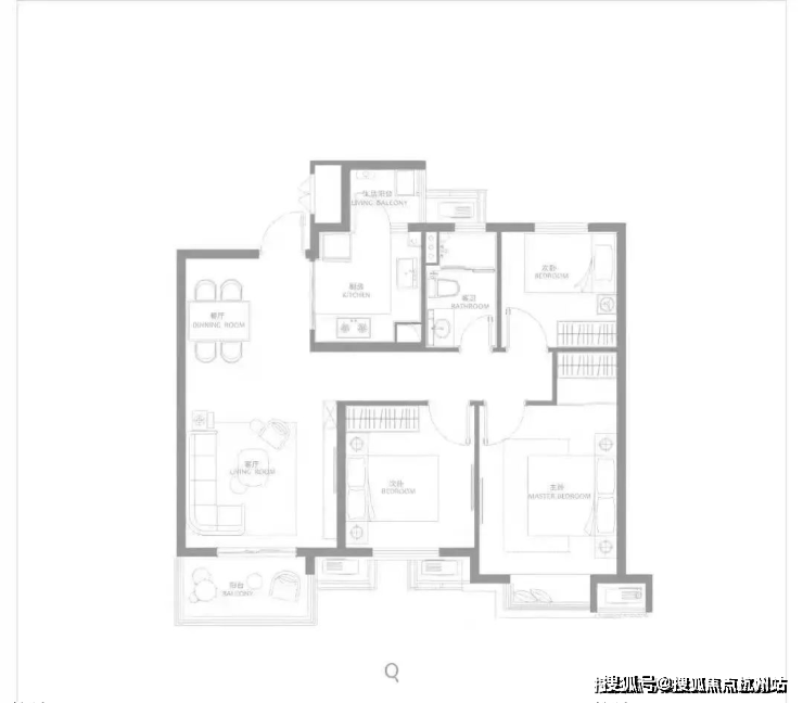 建面约125㎡三房两厅两卫,南北通透,户型方正,主卧大套房,带阳台与独立主卫,更舒适的居住尺度。