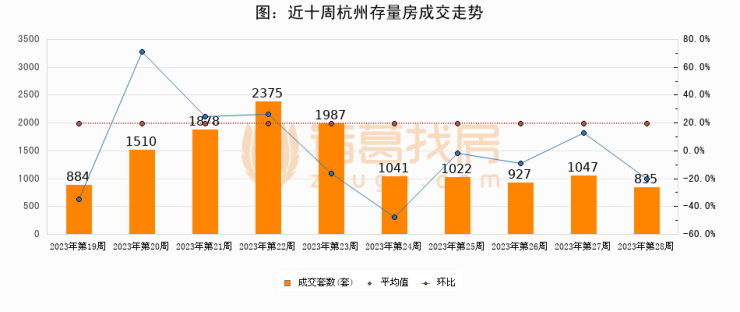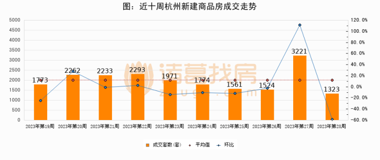 【杭州成交周报】第28周新房成交1323套,二手房835套,涨价房源2194套