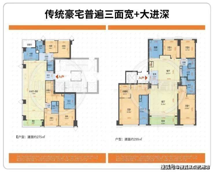 市面上多数顶豪户型普遍三面宽+长进深设计。
