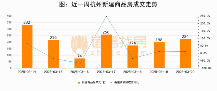 【杭州成交日报】03月20日新房成交224套、二手房303套;涨价房源69套