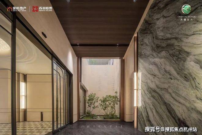 门-廊-庭的入门动线,巧妙地创造出了层层递进的归家感受。天熠东方在一个个的场景转换中,润物无声地深度过滤你的「归家情绪」,这就是大师的功力。