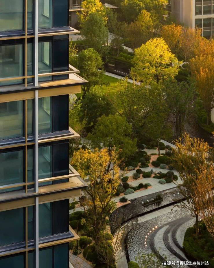 打造约 6 万㎡立体园林(约 8.4 个足球场),含 1.3 万㎡集中绿地、3000㎡水景及 10 大主题庭院。