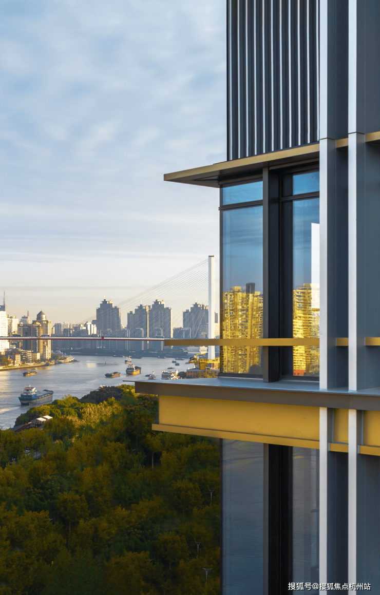 楼栋采用南偏东 21° 黄金倾角布局,超 90% 户型享 270° 环幕江景,高区无遮挡俯瞰陆家嘴三件套、外滩建筑群。
