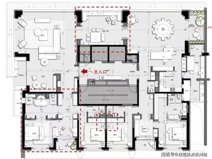 建面约195㎡北向面宽达到约12.5米,堪称IMAX观景面,和黄浦某顶豪275户型面宽数据相近。