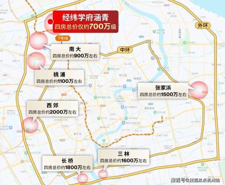 而一旦错过经纬·学府涵青, 700万级预算别说买进中环旁4房,就是外环外的3房都难以够到(外环外的梅陇、唐镇单价超过8万,百平3房总价800万级)。
