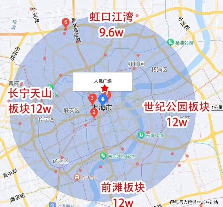 虹盛里坐落于江湾的核心区域,由7幅地块组成,沿万安路连成一线,项目有3号线和即将开建的20号线双轨环伺。以人民广场8KM为半径,往南前滩板块均价已至12w/㎡,西边长宁天山板块均价12w/㎡,东边世纪公园板块也是12w/㎡。相较之下,北边江湾明显是价格洼地。